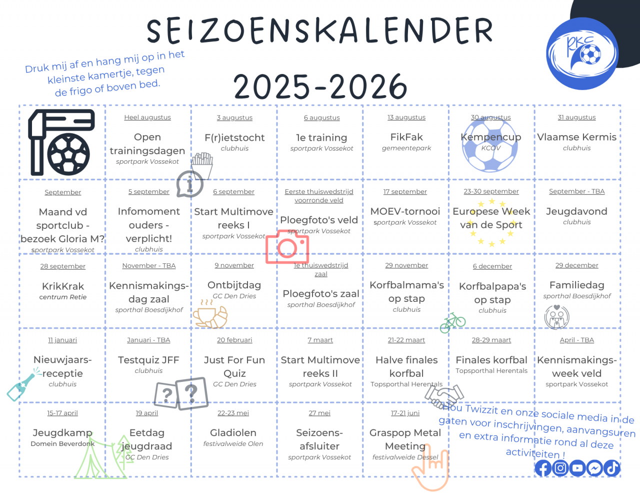 Naast korfbal zijn er bij RKC ook tal van nevenactiviteiten, zoals een kamp voor onze eigen jeugd, een sport- en bewegingskamp ook voor niet-leden, de jaarlijkse Just For Fun-quiz, de jaarlijkse ontbijtdag, helpen en feesten op Graspop Metal Meeting en zo veel meer.